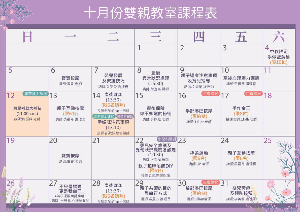 2025 10月 雙親教室課表_台北