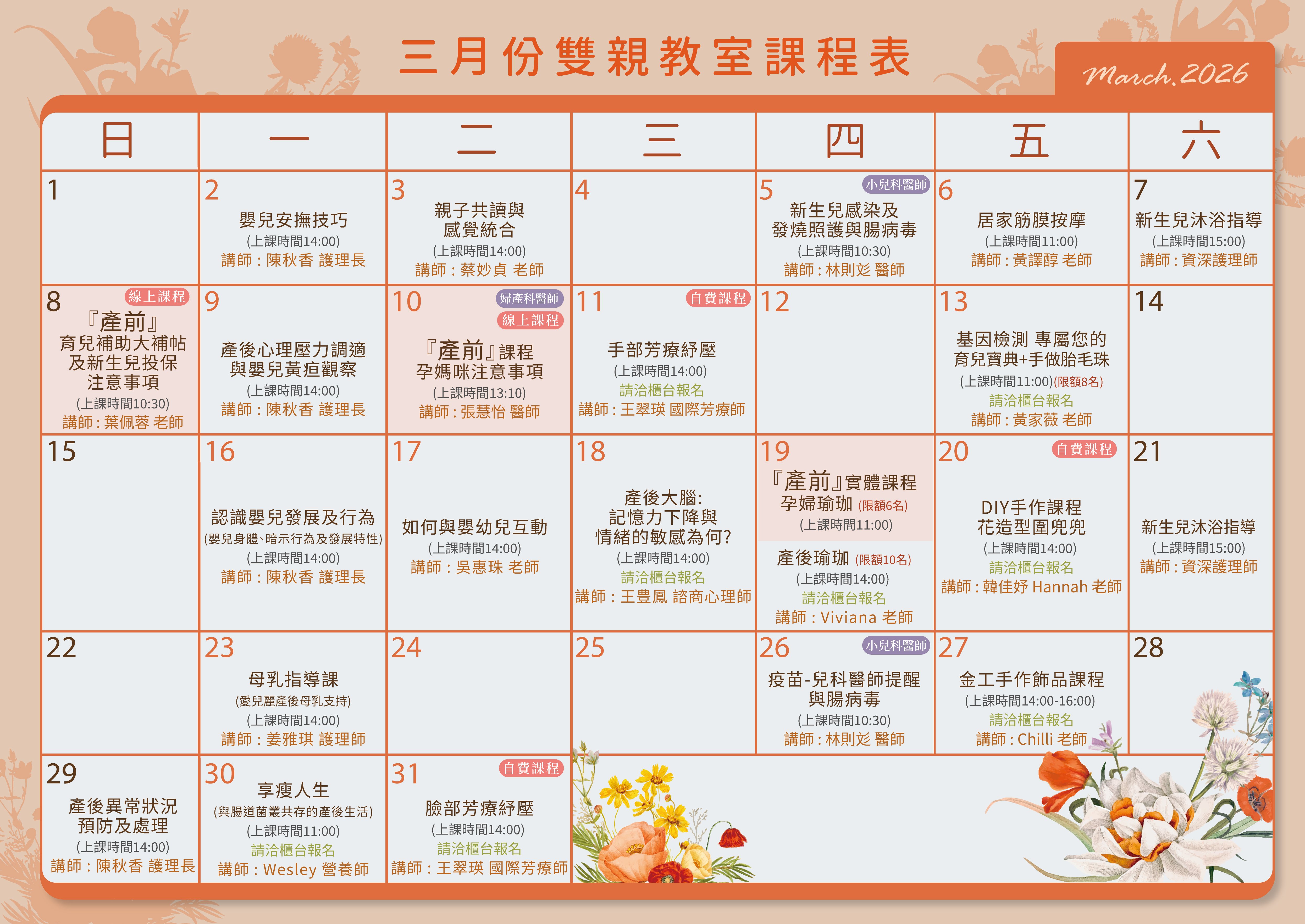 2026 3月 雙親教室課表_台中